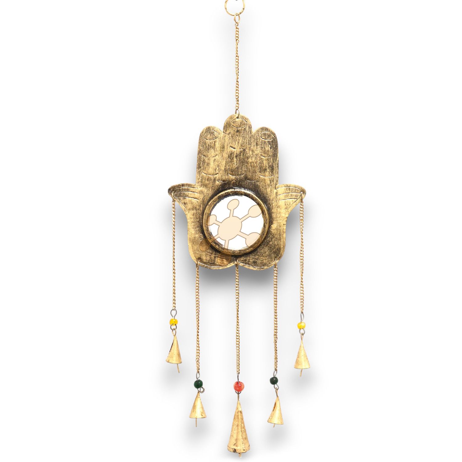 Indická Zvonkohra - Veľká Hamsa Zrkadlo 5 Zvončekov - 19x65cm