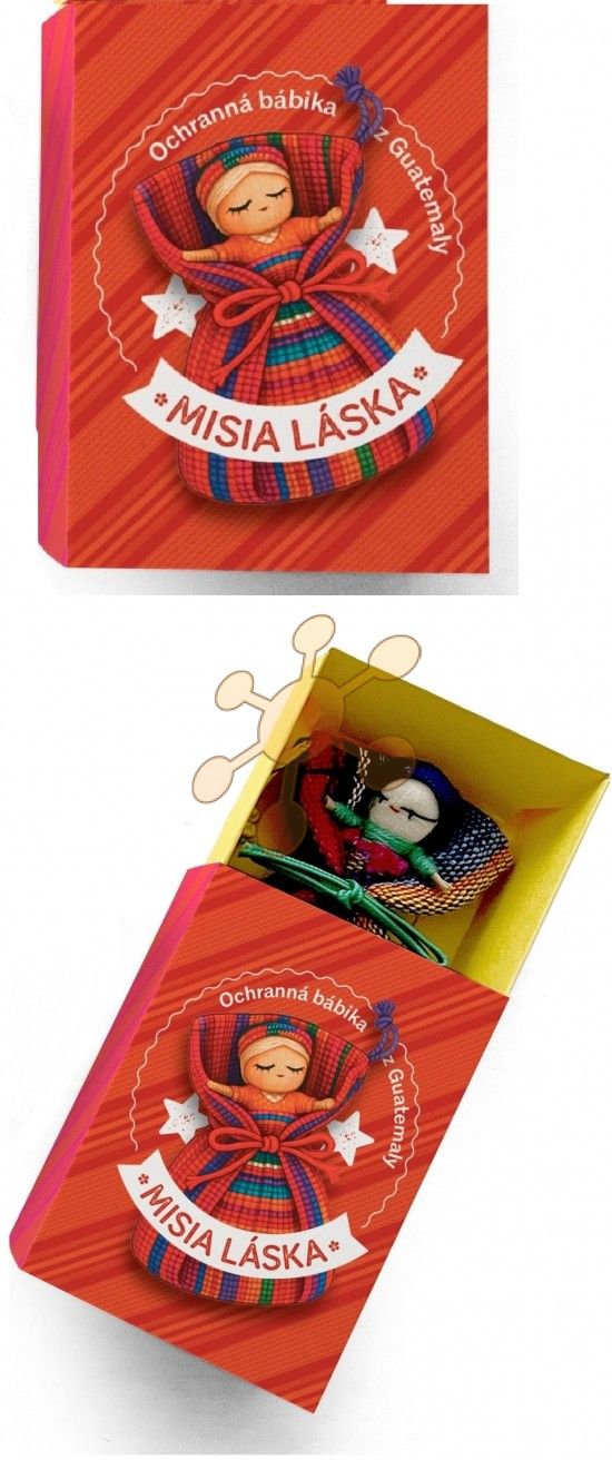 Misia LáskaOchranná bábika z GuatemalyRučne vyrobená s láskou, podľa starej guatemalskej legendy.Táto malá bábika pochádza z Guatemaly, kde ženy po generácie vyrábajú munecas quitapenas – bábiky, ktorým môžeš zveriť svoje starosti.Večer jej pošepkáš, čo ťa trápi, položíš pod vankúš a ráno sa zobudíš s ľahším srdcom.Každá jedna bábika je ušitá ručne, z kúskov látok, ktoré dostali nový život.Každá je jedinečná – tak ako Ty.Nech Ti prináša pokoj, nádej a silu.Ochranná bábika je krásnym darčekom ku knihám Tamary Šimončíkovej Heribanovej Misia Láska (Prísne tajné) a Misia Láska v Thajsku, s ilustráciami Petry Hilbert.V oboch knihách o láske, odvahe a spolupatričnosti tieto malé strážkyne šťastia hrajú dôležitú úlohu.Vydaj sa na veľké dobrodružstvo, ktoré tieto knihy prinášajú.Ďakujeme, že sa stávaš súčasťou misie v mene lásky.