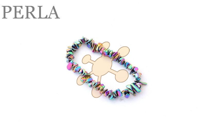 Leštené kamene v tvare nepravidelných sekaných zŕn, navlečené na gumičke.Dĺžka náramku je 16-18 cm.Náramok je z prírodného hematitu, ktorý je vo vákuu pokovený vrst