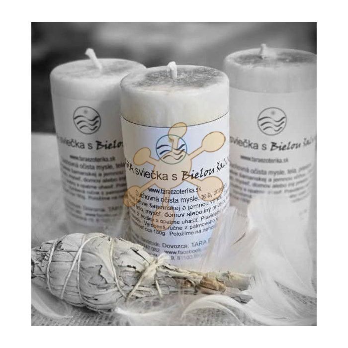 Intuitívna a očistná sviečka s lístkami Bielej šalvie šamanskej, odliata ručne z kvalitného palmového vosku s jemnou vôňou.Pre duchovnú očistu mysle, domu, priestoru, pre odstránenie prekážok. Zapálime ju pre pomoc v ťažkých situáciách , pri potrebe duchovne očistiť myseľ, telo, domov alebo iný priestor, kde je nutné upokojiť a očistiť energie a vzťahy.Ilustračné foto.