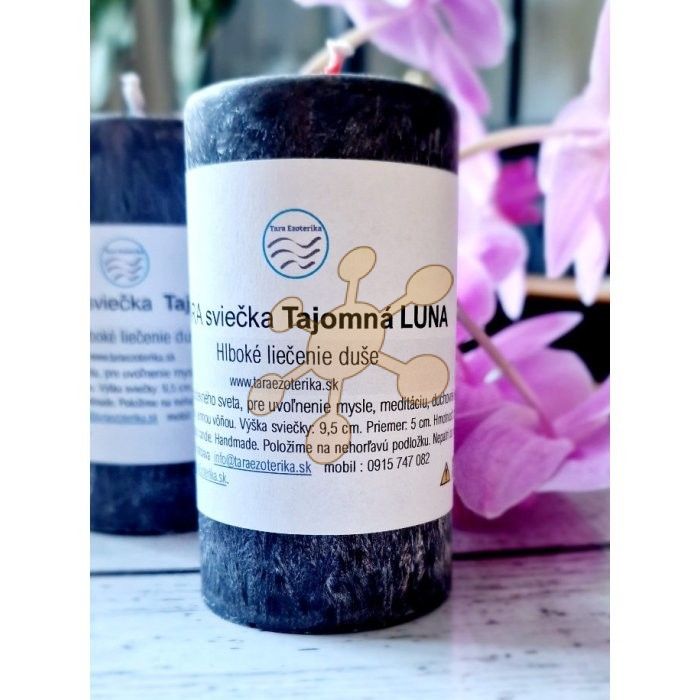 Očistná Tara sviečka Tajomná LUNA pri hlbokom očistnom procese duševného sveta, pre uvoľnenie mysle, meditáciu, duchovné vedenie. Vyrobené na Slovensku.Nechať horieť denne 2 - 4 hodiny a opatrne uhasiť. Pravidelne zastrihávať knôt, aby nevznikol vysoký plameň. Postupujte podľa priloženého návodu.Odliata ručne z palmového vosku a stearínu s jemnou vôňou. Každá sviečka je originál. Pred zapálením odstráňte obal.Už pri samotnom zapálení dochádza k energetickej očiste. Každá sviečka je originálom. Položíme na nehorľavú podložku. Nepatrí do rúk deťom. Ak pálime naraz viacej ako jednu sviečku, vhodná vzdialenosť je 10 cm od seba.Výška sviečky: 9,5 cm. Hmotnosť: 180 - 185g. Doba horenia: cca 25 hod.Ako používať Očistné a Anjelské sviečky TARA Pri prvom zapálení sviečky je vhodné sa osprchovať, sadnúť si do meditačnej polohy a zobrať sviečku do rúk. Svoje želanie, prosbu alebo modlitbu môžete povedať nahlas, zašepkať, alebo pôsobiť na sviečku svojou mysľou. Potom sviečku položte na nehorľavú podložku a zapáľte. Odporúčame nechať horieť sviečku max. 2 hodiny. Ak sa už nerozlieva a horí pokojným plameňom, môžete ju nechať horieť aj 5-6 hodín, resp. vyhorieť celú. Pozorujme, čo sa so sviečkou deje počas horenia. Na očistu resp. podporu zámeru môže postačovať jedna sviečka- niekedy je potrebných aj desať. Očistné sviečky pálime denne dovtedy, kým je plameň pokojný a sviečka vyteká len jemne, a tvorí tzv.škrupinku.Sviečky môžeme kombinovať na základe intuície alebo odporúčaní liečiteľa. (očistne) Denne zapálime sviečku na navodenie duchovnej atmosféry, potreby oslobodiť sa od ťažkých myšlienok, emócií, zlepšenie nálady. (relaxačne) Sviečku zapálime pri relaxačnom alebo detoxikačnom kúpeli z himalájskej soli. (Odporúčame 1 x mesačne, benefitmi kúpeľa sú koncentrovaná myseľ, úľava od bolesti hlavy, migrén, kĺbov, pokojnejší a hlbší spánok). Pri potrebe uskutočniť zmenu života- odporúčame sviečku Santal, Sloboda, Šťastný osud. Nechajte horieť dve-tri hodiny denne. Pri zapálení anjelských sviečok odporúčame meditáciu, modlitbu, stav sústredenia alebo prosby. Pálime denne cca hodinu resp.podľa odporúčaní liečiteľa.English description: The secret Moon candle. Handmade.