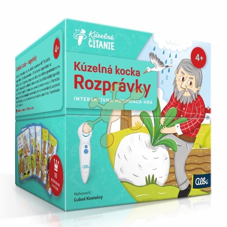 Ako by to vyzeralo, keby hracie karty prehovorili? To zistíte v pamäťovej hre Kúzelná kocka s 10 známymi rozprávkami na 50 kartičkách. Rozprávkovým postavičkám, zvieratkám a predmetom sme vdýchli dušu, aby ožili v príbehoch. Deti si môžu 5 kartičiek z každej rozprávky zoradiť tak, ako príbeh nasleduje a vypočuť si rôzne zvuky a informácie.Každá rozprávka obsahuje kvízové otázky, ktoré preveria detskú pozornosť a krátkodobú pamäť. A okrem toho si môžete zahrať hru Postrehovka s 300 otázkami.Obsahuje viac ako 2 000 zvukov.Zoznam rozprávok: Ako dedko ťahal repku Aladinova zázračná lampa Cisárove nové šaty Janko Hraško Kapsa, potras sa Kocúr v čižmách Kráska a zviera O Pampúšikovi O troch grošoch Vlk a sedem kozliatok Obsah hry:• 50 kariet s oblými rohmi s rozprávkami a otázkami• 2 karty s ikonami a pravidlami hry Postrehovka• 8 kariet s ukážkami ďalších produktovNahovoril: Ľuboš KostelnýIlustrácie: © Alžbeta KováčováObsah a text: © Zuzana Bello, Monika BoďováPRODUKT NEOBSAHUJE ELEKTRONICKÚ CERUZKU ALBI!
