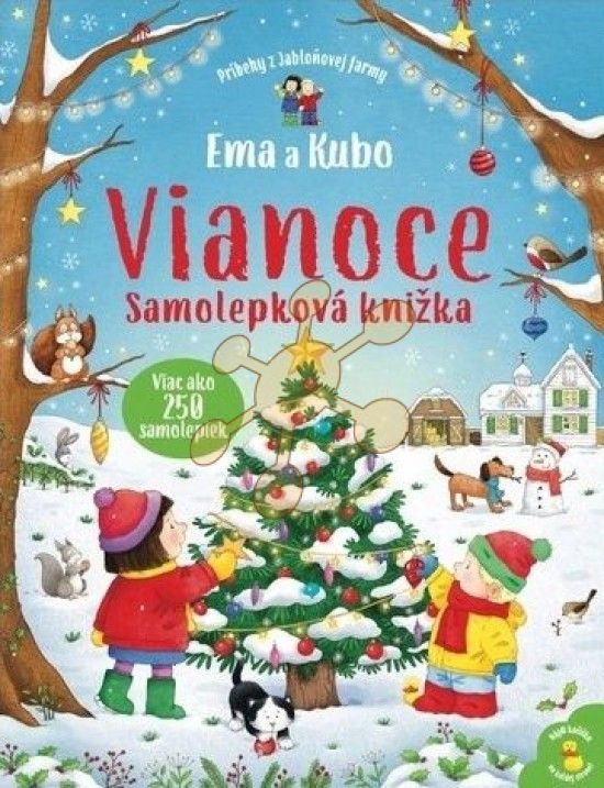 Viac ako 250 samolepiek, vianočné scenérie a obľúbené postavy z Jabloňovej farmy! Nezabudni nájsť kačičku na každej strane.