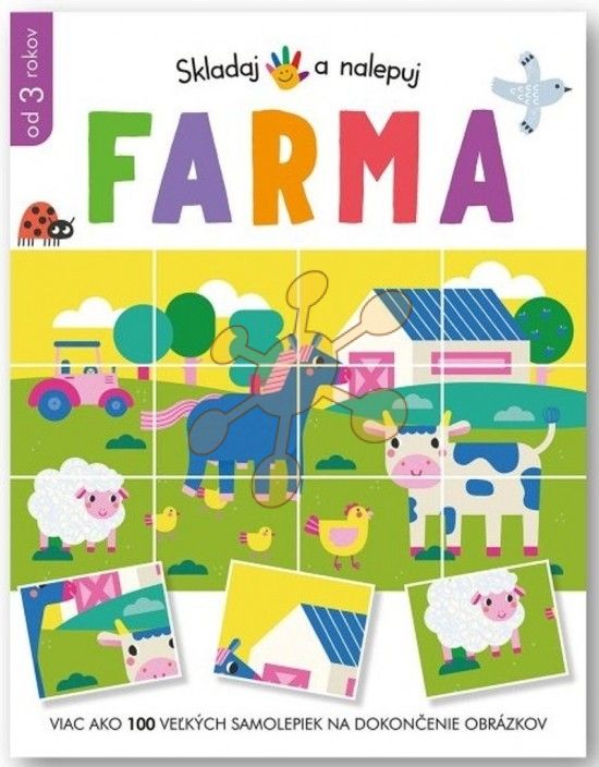 Hravý a farebný pracovný zošit s témou farmy s viac ako 100 samolepkami podporuje dokončovanie zhodných obrázkov a rozvíja predstavivosť a jemnú motoriku.