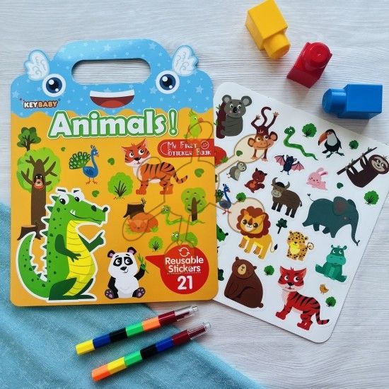 "Objavujte tajomný život zvieratiek vďaka znovupoužiteľným gumolepkám!Vyskladajte si vlastné scenérie, v ktorých je hlavným hrdinom lev, koala, slon, medveď či krokodíl.Každá sada obsahuje 21 gumolepiek a roztvárateľné pozadie s prírodným zátiším aj so stranou, na ktorej sa nachádzajú tiene zvieratiek. Úlohou dieťaťa je prilepiť nálepku na správny tieň. Na každom tieni je zároveň uvedené anglické pomenovanie konkrétneho zvieratka (lion – lev atď.).Podporte jemnú motoriku, kreativitu a predstavivosť vašich detí prostredníctvom veselých gumových nálepiek, ktoré môžu ľubovoľne nalepovať a odlepovať podľa vlastnej fantázie!"