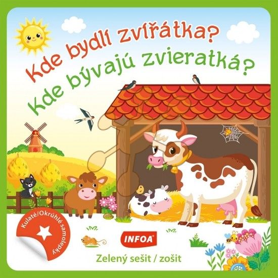 Zošit s veselými zvieratkami a veľkými samolepkami. Nalepovanie samolepiek na správne miesta rozvíja detskú predstavivosť, manuálne zručnosti a logické myslenie. Deti majú za úlohu odpovedať na otázky a dolepiť správne samolepky.