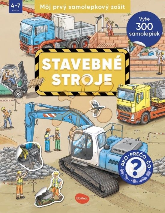 Ako? Prečo? Čo? V tejto velkej samolepkovej knižke nájdete odpovede na všetky zvedavé otázky týkajúce sa stavebných strojov, viac než 300 samolepiek na dotváranie scén a plnenie zábavných úloh na každej dvojstrane.