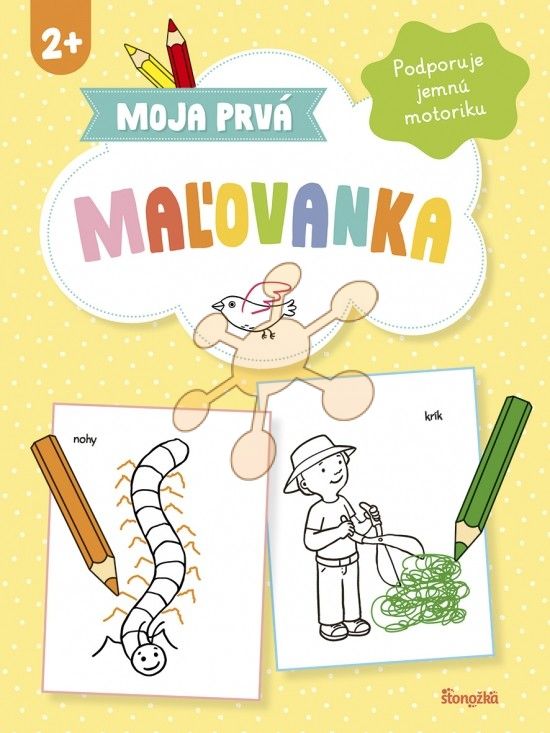 Lienka nemá bodky, v pieskovisku nie je piesok a nosorožcovi chýba roh. Rýchlo to oprav!Moja prvá maľovanka je zábavná a interaktívna knižka, ktorá rozvíja tvorivosť a jemnú motoriku. Na každej strane je jednoduché slovo – napríklad bodky, konáre či omáčka – ktoré deťom napovie, čo na obrázku chýba. Úlohou malých umelcov je obrázok doplniť – dokresliť lienke bodky, stromu konáre alebo cestovinám paradajkovú omáčku.Rozmanité motívy podnecujú detskú predstavivosť a zároveň ich vedú k precvičovaniu ťahov, správneho úchopu ceruzky a koordinácie ruky a oka. Okrem navrhnutých úprav môžu deti obrázky aj ďalej ľubovoľne vyfarbovať a čarbať – ako sa im len zapáči!Pre deti od 2 rokov.