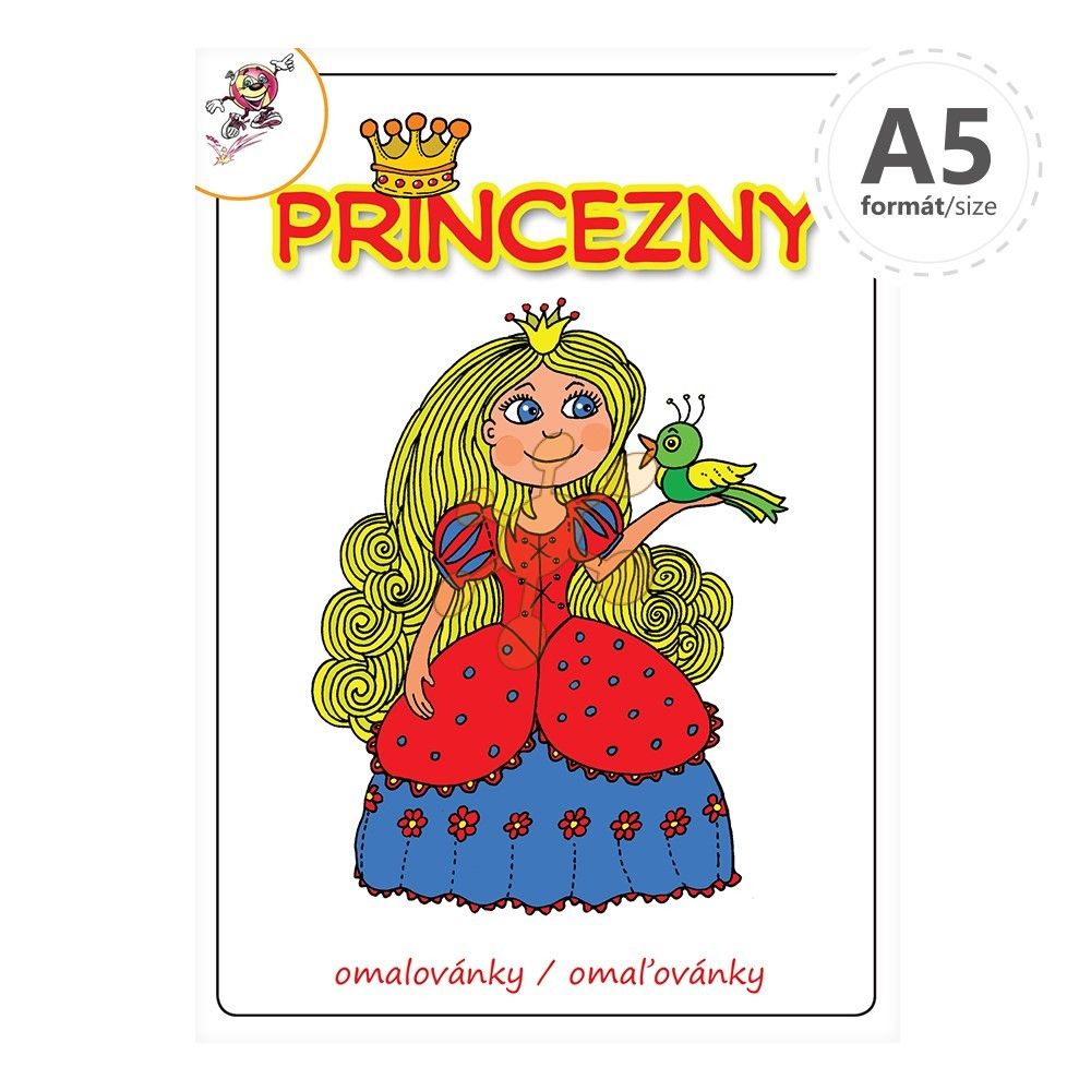 Detská omaľovanka Princezny A5 s farebnými obrázkami a predlohami pre rozvíjanie detskej fantázie. Maľovanie podľa predlohy. Počet strán: 16.