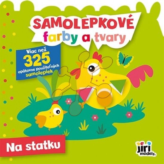 Tvarovaná samolepková knižka malého formátu obsahuje 16 strán a 8 listov opakovane použiteľných samolepiek farebných tvarov, ktoré deti dolepujú do obrázkov podľa príslušnej farby a tvaru.