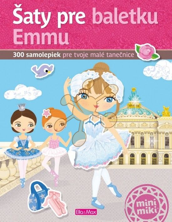 Vydajte sa s Emmou do čarovného sveta baletu! Odprevaďte ju do známeho parížskeho paláca Garnier, nahliadnite do skúšobní, šatní, výrobne kostýmov… a navštívte tie najkrajšie balety!Knižky z kolekcie minimiky patria dlhodobo k našim najpredávanejším. Predstavujú tým úplne najjednoduchším a zároveň hravým spôsobom módu a niečo z kultúry cudzích krajín. Táto novinka sa z bežnej série trochu vymyká. S obľúbenou francúzskou bábikou Emmou v nej totiž zavítame na parížsky balet, do sveta rozprávkových dekorácií a kostýmov. Hlavne dievčatá určite ocenia atraktívnu tematickú kolekciu šiat pre baletky na viac ako 300 samolepkách a v neposlednom rade aj dvojjazyčné texty v obrázkoch.