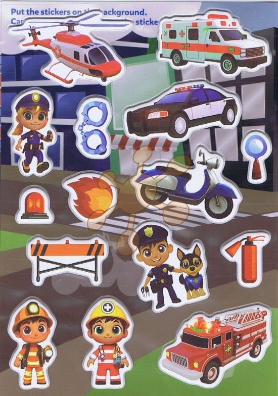 Znovupoužiteľné fosforeskujúce nálepky s motívom hasičov, zdravotníkov a policajtov rozžiaria každú izbu a vnesú do nej akčnú atmosféru záchranných akcií! Po absorpcii svetla svietia v tme!