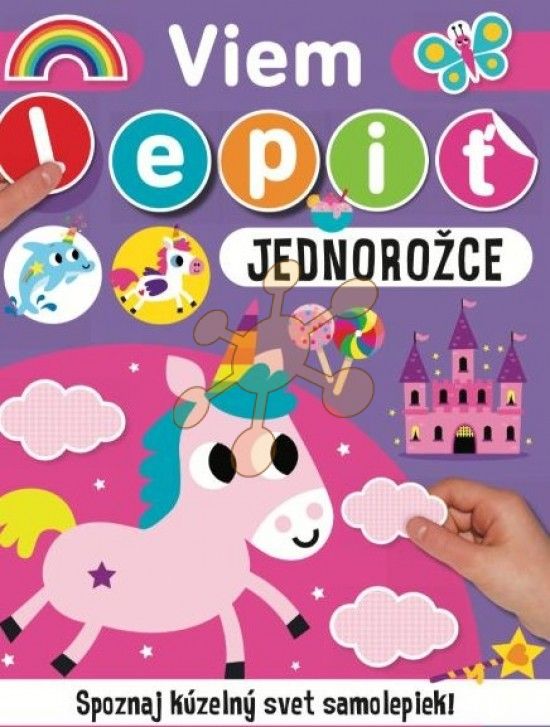Kniha plná kúzelných jednorožcov, obrázkov na vyfarbenie a veľkých samolepiek pre deti, ktoré sa učia lepiť a tvoriť.