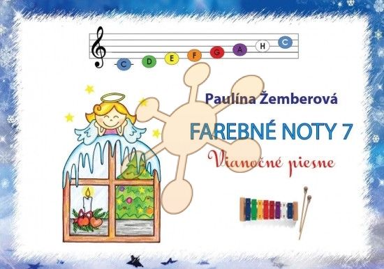 Noty obsahujú 13 vianočných piesní, ktoré je možné zahrať na ôsmich tónoch - každá nota má svoju farbu (netreba poznať noty). Sú určené pre deti i dospelých. Ak nemáte rovnako farebný xylofón, nalepíte si farebné samolepky na klavír, elektronické piano, harmoniku či kalimbu. (Samolepky sú súčasťou nôt spolu s vystrihovačkou.) Každá pieseň je doplnená vhodným obrázkom, pre lepšie zapamätanie.Zoznam piesní:1. Do noci tichej2. Vianoce krásne sú3. Pred oknom, za oknom4. Mikulášku, dobrý strýčku5. Keď sa Kristus rodí6. Pospiechali do Betléma (Sláva bud na nebesiach)7. Nesiem vám noviny8. Čas radosti, veselosti9. Dnešný deň sa radujme10. Daj Boh šťastia tejto zemi11. Búvaj, Dieťa krásne12. Vianočná hviezda (Malá hviezda)13. Štedrý večer nastal