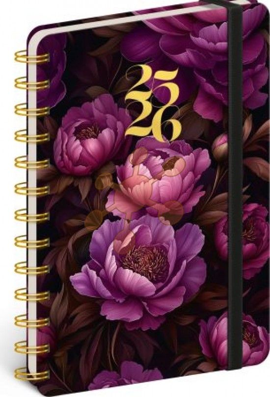 NOTIQUE Špirálový 18-mesačný diár Petito – Fialové kvety 2025/2026, 13 x 18 cm
