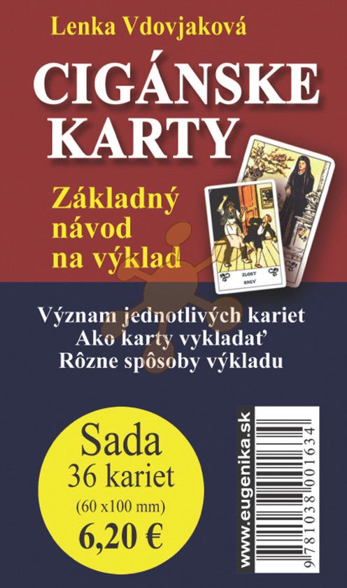 Sada tzv. Cikánských karet, kterých je 36. Jsou to jedny z nejstarších karet určených pro vykládání a věštění. Je k nim přiložena brožurka, ve které najdete vysvětlení, co jednotlivé karty znamenají, čili jak si vysvětlit jejich poselství při výkladu, a to v kategoriích: hlavní význam, láska, zaměstnání, zdraví. Brožura obsahuje i několik návodů, jak vlastně karty vykládat. Toto výhodné balení je tedy dostatečné pro každého, kdo si chce tyto karty vyzkoušet, seznámit se s nimi, udělat si z nich svého stálého průvodce, rádce a pomocníka.Na druhé straně, autorkou této malé brožurky je Lenka Vdovjaková, která je autorkou i mnohem obsáhlejších příruček k cikánské karty - co vás možná bude zajímat, když se seznámíte se základem práce s cikánské kartami a budete se chtít dozvědět více. V tom případě se podívejte: Cikánské karty v praxi a Cikánské karty a tarot.