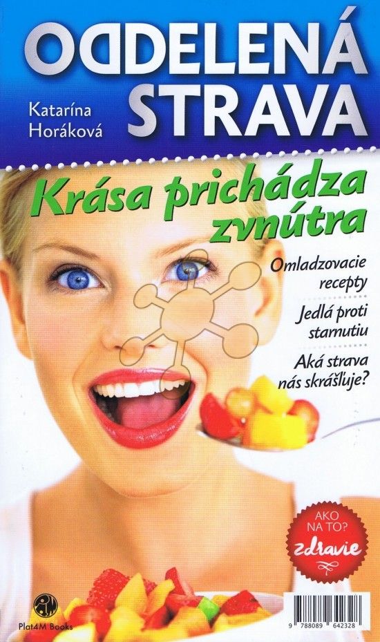 Prirodzený proces starnutia nemožno zadržať, avšak mladistvo vyzerať a žiariť pôvabmi, to môžeme dokázať. Ako? Ak si budeme správne ošetrovať svoj zovňajšok, dostatočne sa telesne i duševne uvoľníme a predovšetkým, ak sa budeme správne stravovať. Ak zanedbávame výživu a zabúdame na najlacnejší elixír krásy, vodu, ani tá najlepšia kozmetika nie je všemocná. Patríte medzi tých, ktorí chcú získať čo najviac poznatkov, ako mať peknú kožu a dokonalú pleť v každom veku? Dá sa skvelo vyzerať aj bez líčidiel? Akú úlohu môžu hrať vitamíny a minerály či bielkoviny a omega-3 mastné kyseliny v tomto úsilí, ako si zabezpečiť ich dostatočný príjem? Autorka Katarína Horáková vo svojej knihe Oddelená strava: KRÁSA PRICHÁDZA ZVNÚTRA upriamuje svoju pozornosť na tieto otázky, ktoré predpokladá, že mnohým „víria hlavou“.Podrobne sa venuje tomu, čo je príčinou zvädnutej, ochabnutej, zvráskanej pleti. Predstavuje krok za krokom, ako by sme sa mali stravovať pri rôznych typoch pokožky a jej nárokoch na výživu, aby sme mohli korigovať naše nedostatky, aby mohla naša krása opäť naplno vyniknúť. Uvádza aj jednoduché recepty na princípe oddelenej stravy, plné nielen chuti, ale aj cielene zložených živín.Telo nás často varuje, vysiela signály a nemou rečou nám naznačuje, čo potrebuje. V knihe autorka dešifruje tajomnú reč nášho tela. Potom už necháva rozhodnutie na čitateľovi, ako s touto informáciou bude zaobchádzať...Vzhľad vlasov a nechtov je barometrom nášho interného zdravia. Slabé zdravie vlasov a nechtov je zvyčajne príznakom deficitu živín. Kto ignoruje ich význam, presvedčí sa, že „podvádza“ sám seba. Autorka ponúka aj riešenia konkrétnych vlasových a nechtových problémov a uvádza tipy ako sa správne starať o svoje vlasy, ako podporiť ich zdravý rast.Kto teda chce aktívne niečo urobiť pre svoju pokožku, vlasy či nechty, aby boli pevné, aby mal stále sviežo napnuté tkanivo a uchoval si mladistvý vzhľad, odpoveď najde v najnovšej knihe Kartaríny Horákovej Oddelená strava: KRÁSA PRICHÁDZA ZVNÚTRA. V príhovore k čitateľom na záver autorka konštatuje: Bola by som veľmi rada, keby vaša „ješitnosť“, ale aj moja knižka vás dostatočne motivovali rozhodnúť sa jesť zdravšie, a tak si udržať večnú mladosť a krásu.Táto kniha nadväzuje na tvárovú gymnastiku a masáž tváre uvedenú v autorkinej knihe Oddelená strava: PRE ZDRAVIE. Dáva nám šancu prostredníctvom zdravej výživy zlepšiť svoj zovňajšok z vnútra von a usmerniť korigovanie našich nedostatkov tak, aby naša prirodzená krása a zdravie mohli opäť naplno vynikať.